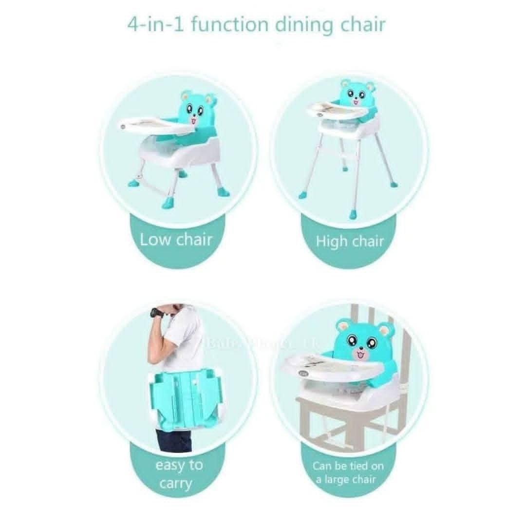 - 4 in 1 Baby High Chair – Solid structure, imitation pyramid structure. which is perfect to hold babies in the chair safely and convenience when dining at home or travelling outside.