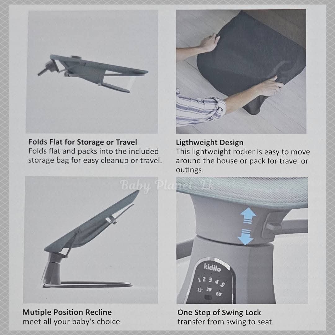 The Kidilo Baby Swing for Newborns is the perfect solution to soothe and comfort your little one, combining modern technology with thoughtful design for ultimate safety and relaxation. Powered by an electric motorized system, this swing provides a gentle, calming motion that helps keep your baby content and calm.
